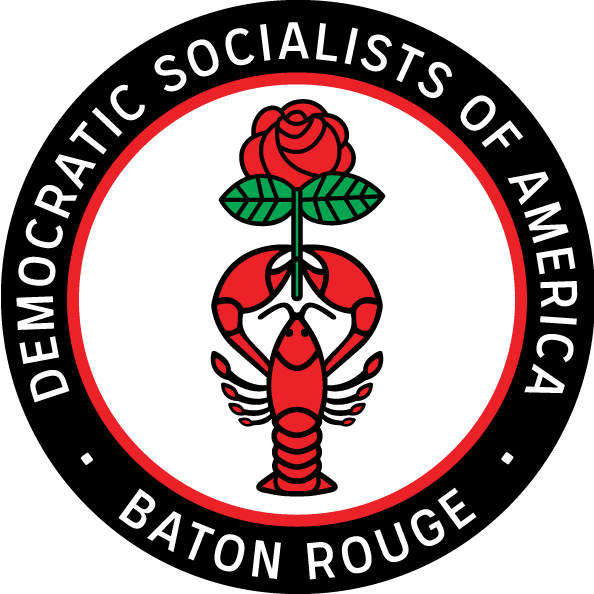 The newly established Baton Rouge chapter of the Democratic Socialists of America sought a logo that would reference the logo of the national organization (two hands holding a red rose), but also clearly identify the group as belonging locally in Louisiana. The logo is used on t-shirts, buttons, banners, flyers, and social media. The final solution features a crawfish holding a red rose surrounded by the organization’s name and chapter location.