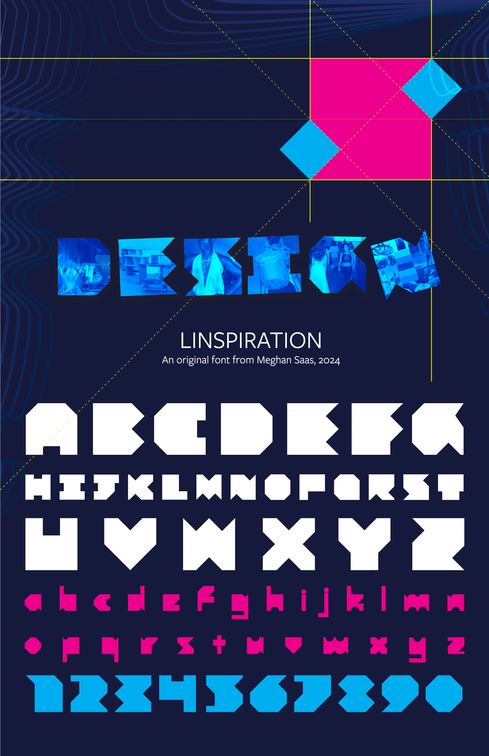 Linspiration is an original font designed in 2024 for Tulane School of Architecture’s Design program. Named for the program’s co-founder and Director, Prof. Tiffany Lin, the font combines a geometric logic with plenty of room for playful application.