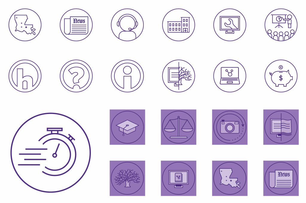 Vector icon system design for use in print and web materials.