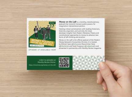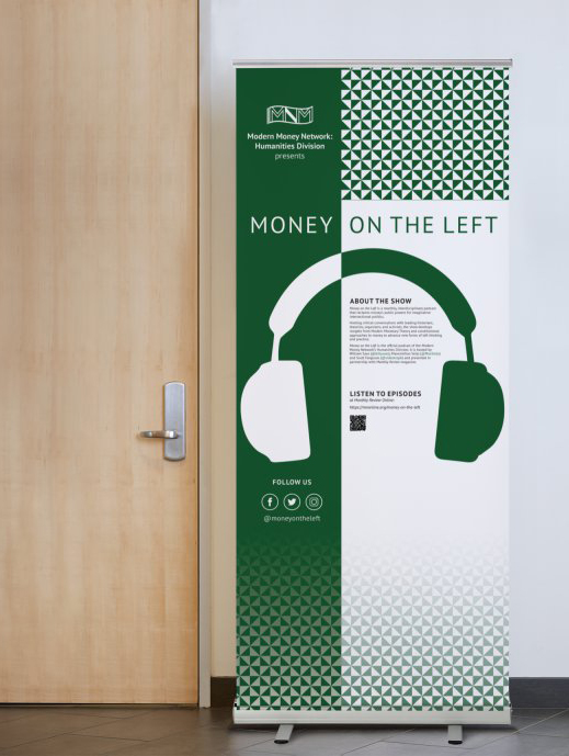Money on the Left is a monthly multi-disciplinary podcast, produced by the Modern Money Network, Humanities Division. Episode art, social media promotional materials, and conference materials produced as needed.