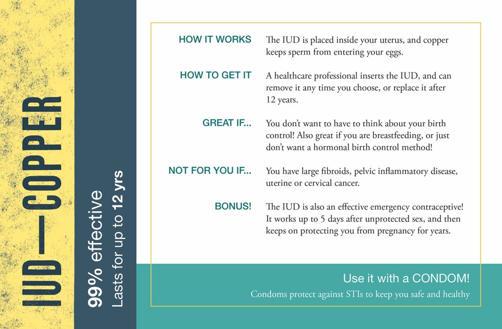 A set of info cards, each featuring detailed information about a method of birth control. Set of 12 double-sided cards at 5.5″x8.5″. Digitally printed. Featuring letterpress-printed icon designs.