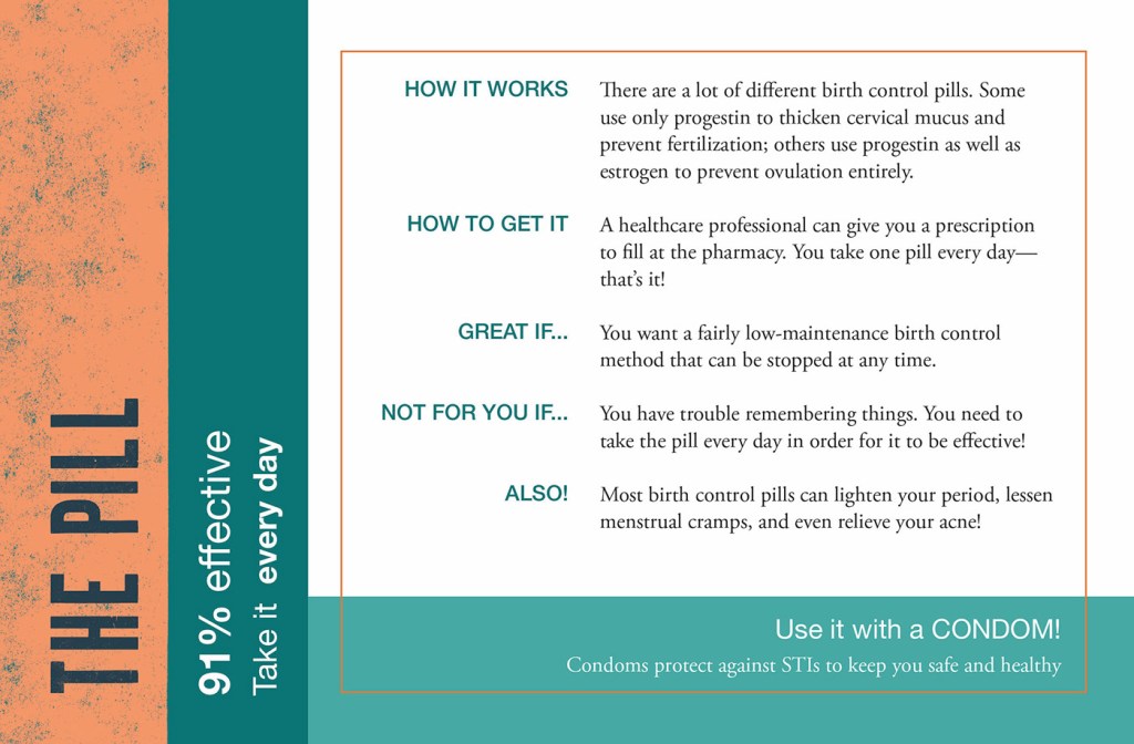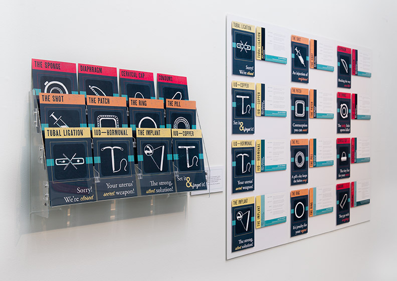 TAKINGbirthCONTROL is a campaign begun in 2018 to educate and empower people with uteruses. It includes a 24″x36″ poster, a pocket guide booklet, drop cards, and a deck of playing cards. The materials are in use at a local abortion clinic.