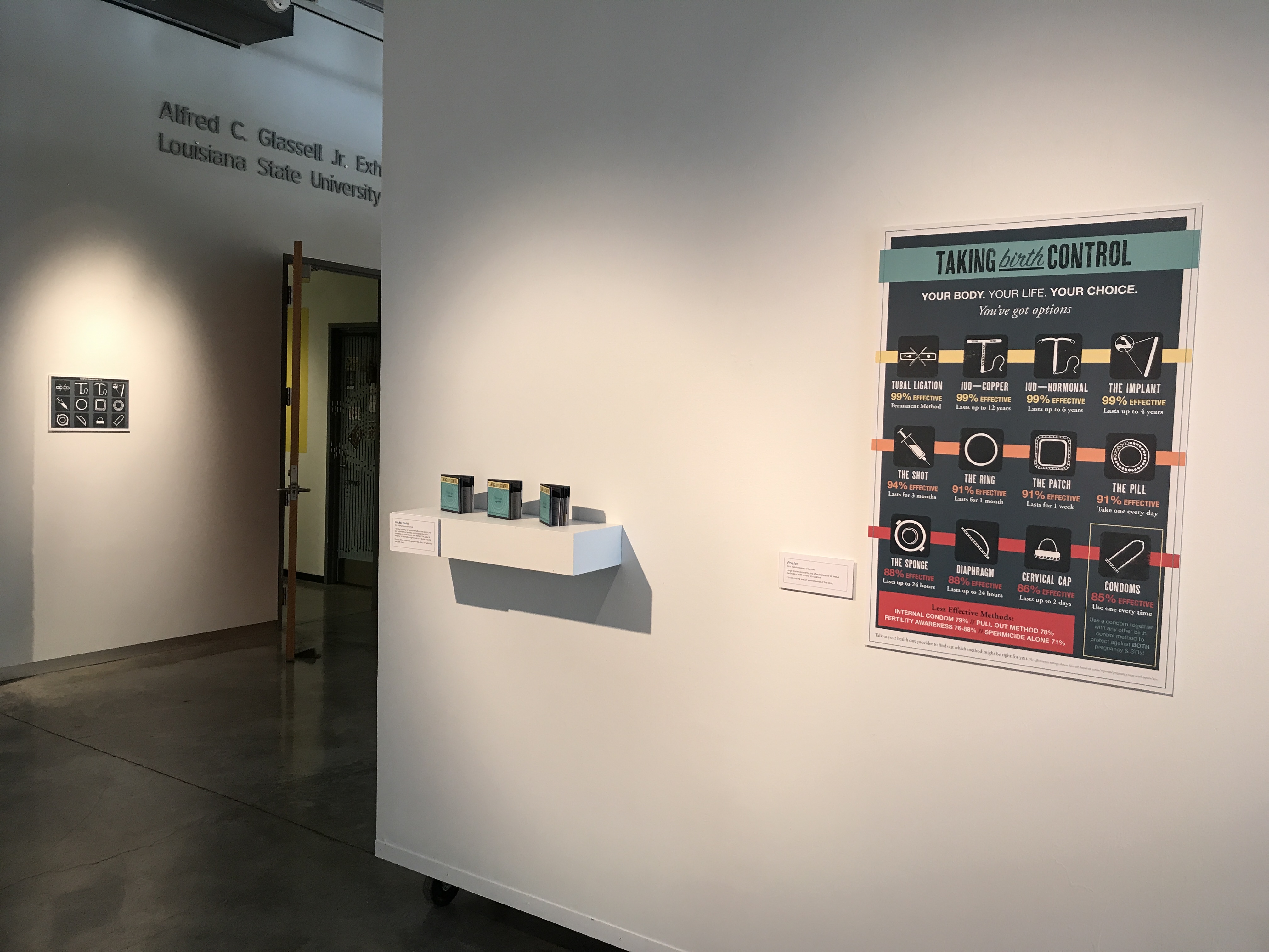 An exhibition at Glassell Gallery in downtown Baton Rouge, LA in October, 2018 showed the graphic design campaign, together with the book arts campaign, alongside information displays about the tenuous state of reproductive rights in Louisiana.