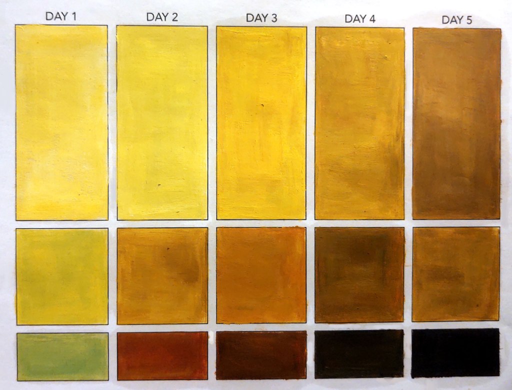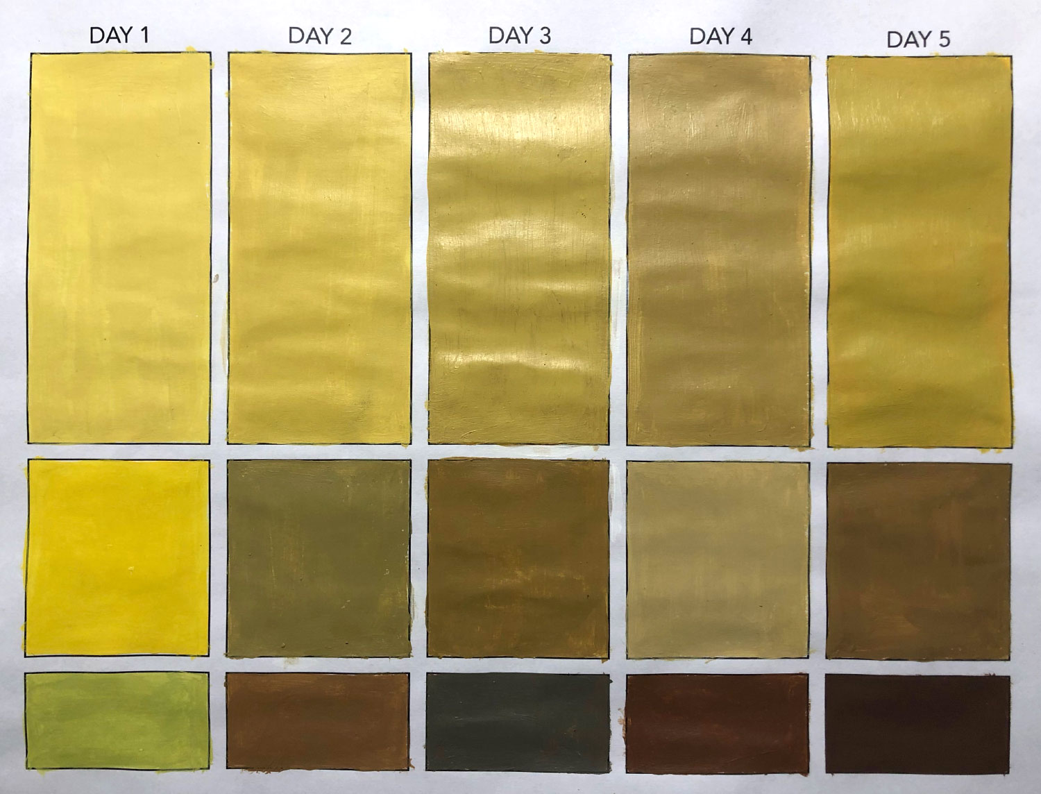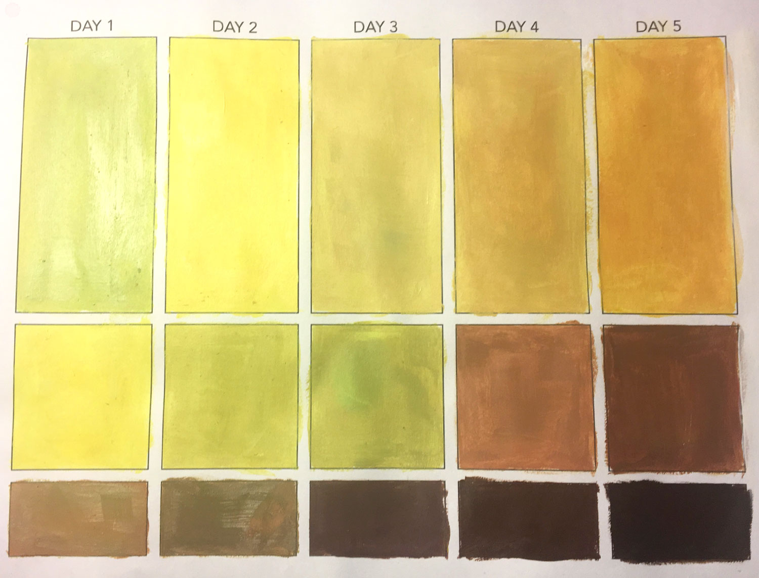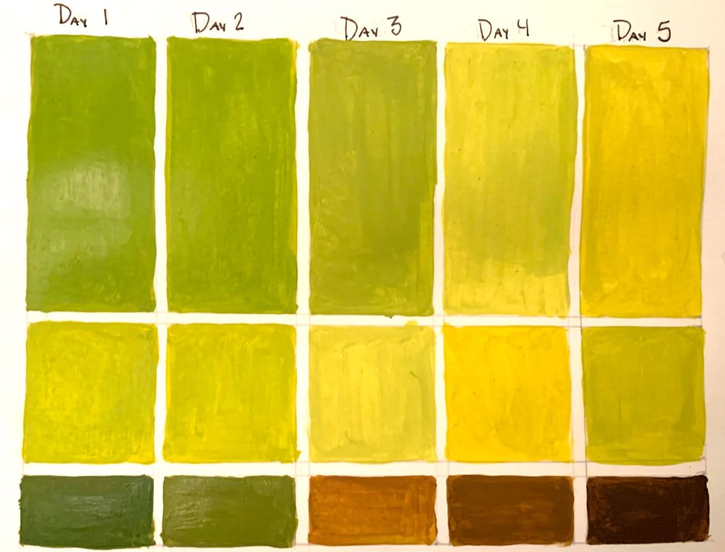 Students photograph a banana over a 5-day period, looking for subtle shifts in hue. Each day they capture a 3-color palette based on the banana’s dominant and accent colors.