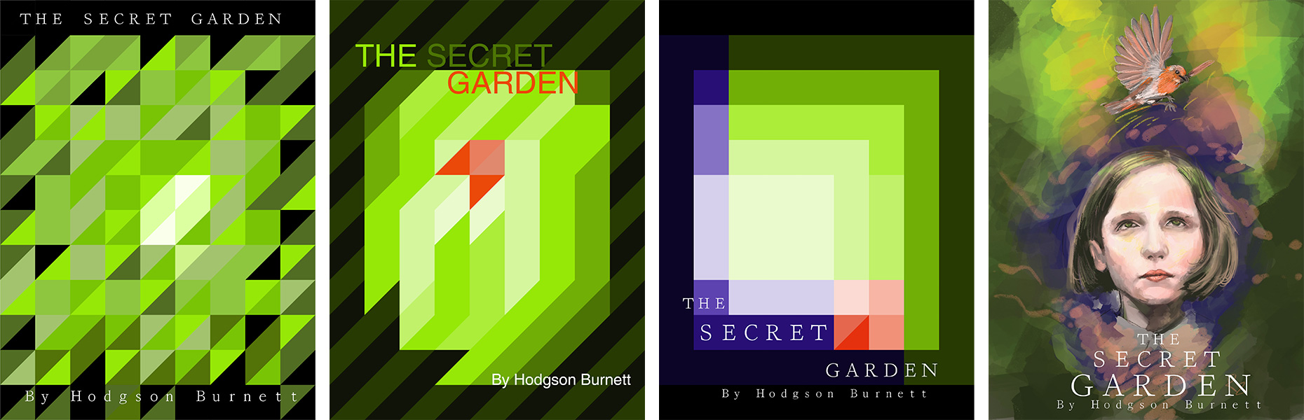 Book covers give readers a small peek into what they’ll experience in the story. For this project students design four covers for a single book. They each select a book which is in the Public Domain. Students then use color to communicate a message to the reader about plot, character, or emotional tone. A gridded template is provided for the first three covers. Cover #1 uses only one hue, #2 uses only two hues, and #3 uses only three hues. Cover #4 is a wild card—any combination of hues is fair game and students may use whatever media they prefer. This project gives students a chance to apply their new knowledge of color psychology and geometric abstraction, and to explore how color can help set a tone and tell a story.