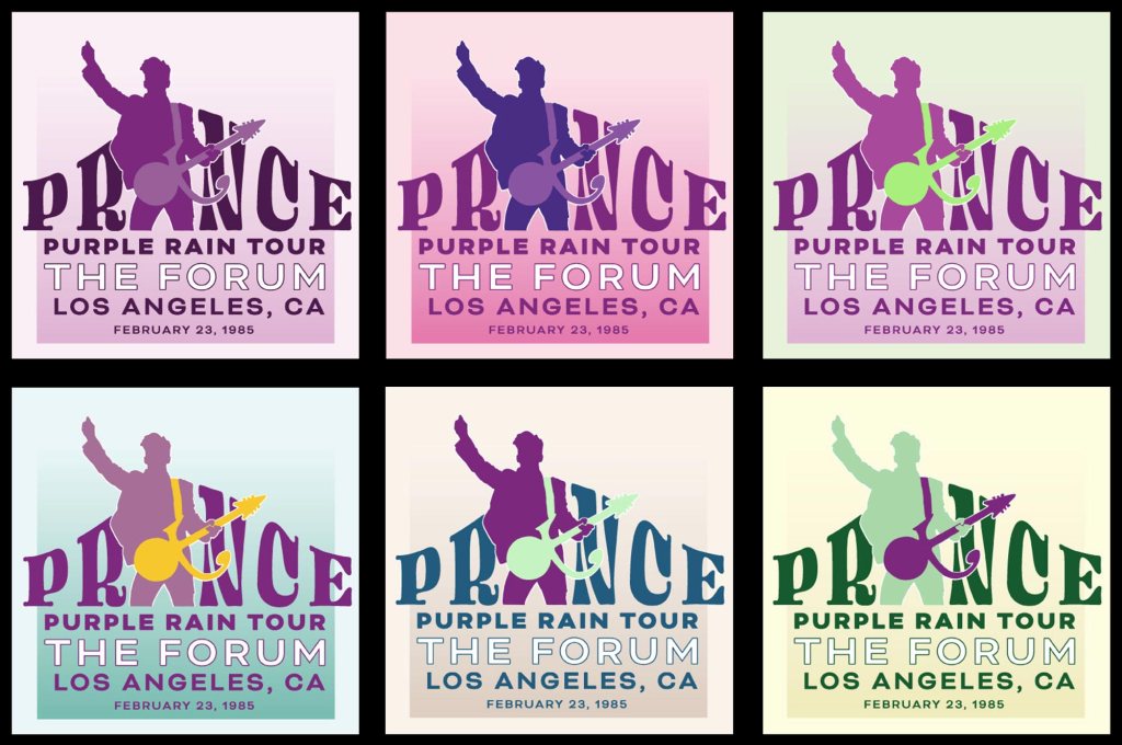 In this project, students select from Rolling Stones’ list of the 50 best concerts of the last 50 years. They research the musical artist, the era, the audience, and more to create a mood board and select a single key color. They design a square promotional graphic for the concert, and apply each of 6 color harmonies using their key color to the same graphic. Students grapple with the varying complexities of each harmony, and utilize value and saturation in each application to maintain legibility and emotional impact.